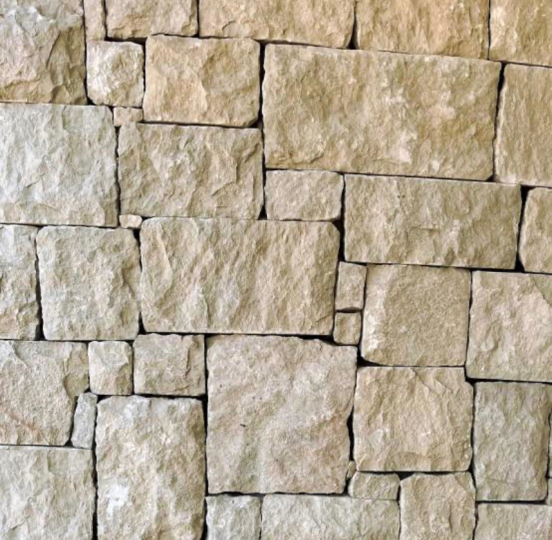Piedra caliza cizallada en formato cuadrado, consiguiendo una superficie plana en todos sus lados. Al estar cuarteada facilita su colocación y permite crear una singular estética y elegancia. Su tonalidad va desde el blanco amarillento al ocre.